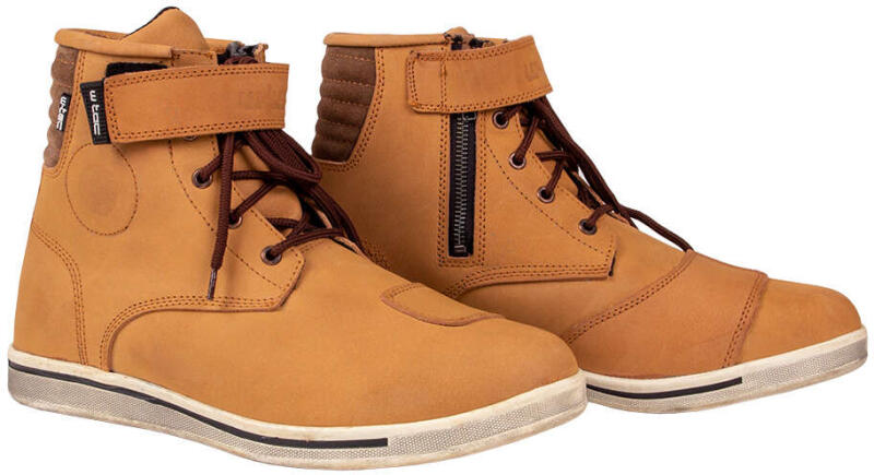W-TEC JuriCE Motoros Csizma: Stílusos, Biztonságos és Kényelmes ?️ Ez a W-TEC JuriCE motoros csizma tökéletes választás a 70-es évek stílusát kedvelő motorosok számára, akik a modern technológia nyújtotta védelmet is értékelik. Kiváló minőségű bőrből készült, és EN 13634:2015 szabvány szerinti biztonsági tanúsítvánnyal rendelkezik, így megfelel az EU jogszabályi követelményeinek. Akár Cafe Racer motorodhoz, akár hétköznapi viseletként is tökéletes választás. Kiemelt Jellemzők:Biztonság: Erősített orr, sarok és boka védelem, plusz védőréteg a váltó területén. A dupla és tripla varrások extra stabilitást és tartósságot biztosítanak. Kényelem: A hosszú cipzár, a fűző és a tépőzár kombinációja könnyű fel- és levételt tesz lehetővé. A rugalmas bordázott panel a boka felett tökéletes illeszkedést biztosít. A puha, légáteresztő AirMesh bélés maximális kényelmet nyújt. A csúszásgátló talp biztos és érzékeny lábtartást garantál. Stílus: Klasszikus 70-es évek ihlette dizájn, kiváló minőségű marhabőr. Műszaki adatok:Tulajdonság LeírásTanúsítás CE (EN 13634:2015)Külső anyag MarhabőrBélés Puha, légáteresztő AirMeshVédőelemek Erősített orr, sarok, boka, váltóvédelemZárási mechanizmus Cipzár, fűző, tépőzárTalp CsúszásgátlóMegjegyzés: A kép csak illusztráció. A cipő színe kissé eltérhet a képen láthatótól.