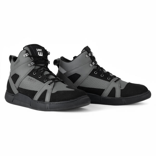 Motoros csizmát keresel tornacipő megjelenéssel?Akkor a  W-TEC Milwook motoros csizma  sötét színű, hétköznapi, magas szárú tornacipő kialakítással tökéletesen megfelel számodra. Ez a cipő ötvözi a városi stílust a motoros funkcionalitással , így garantálja a biztonságodat az utakon motorozás közben . A csizmában a  biztonság és a kényelem kéz a kézben jár. A megerősített orrész, sarok és boka védelmet nyújtanak a stratégiai pontokon, a megerősített váltófelület pedig gondoskodik a pontos és habozásmentes váltásról. Az olajálló, csúszásgátló külső talp még nedves aszfalton is magabiztosságot ad, a lyukacsos panelek (perforációk) pedig a tökéletes légáramlásról gondoskodnak menet közben. A W-TEC Milwook motoros csizma a sarok felett fényvisszaverő elemet is találsz, amely növeli a láthatóságodat, ahogy sötétedik. A klasszikus fűzős rögzítés fém fűzőlyukakkal lehetővé teszi, hogy a szorítást pontosan a lábadhoz igazítsd. A kivehető ergonomikus talpbetét egy egész napos viselés után is gondoskodik a kényelmedről. A  W-TEC Milwook motoros csizma a sportos stílus és a biztonság áhított kombinációját nyújtja – akár a motoron ülsz, akár a város utcáin sétálsz.